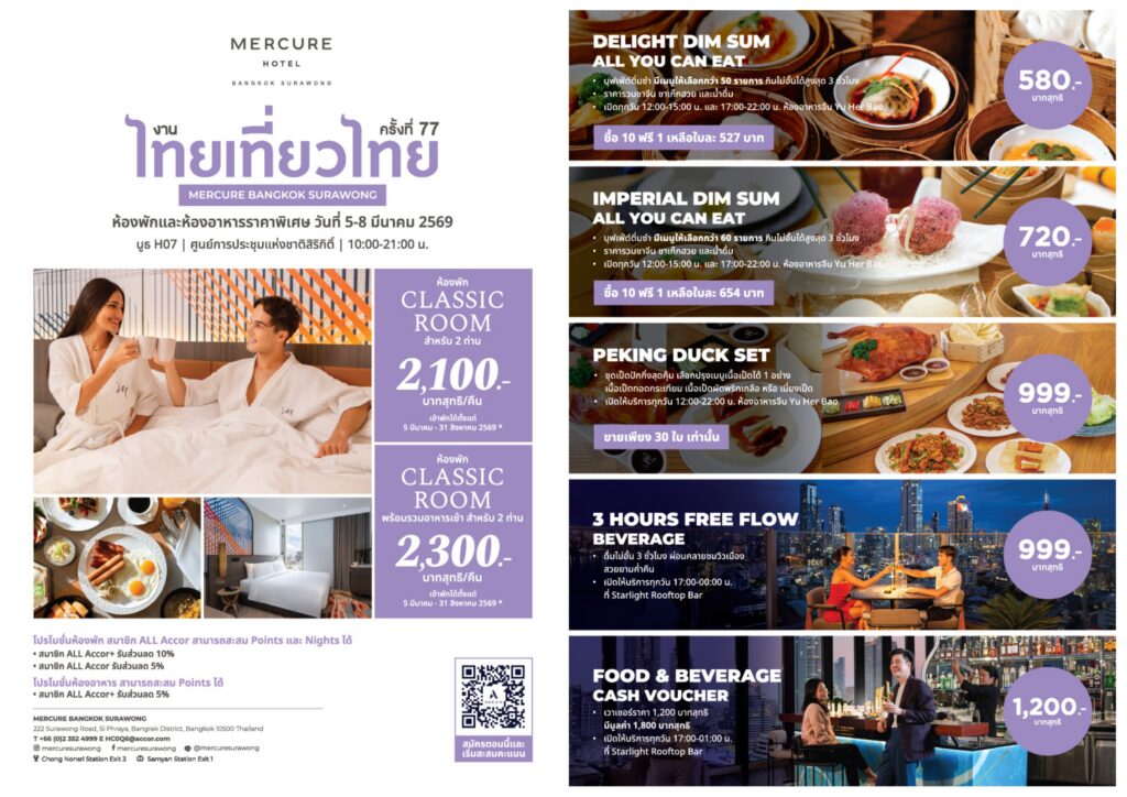The Mercure Bangkok Surawong is not just a hotel; it’s a narrative. A narrative where every guest finds their story, from the wandering solo traveller to the family crafting memories. We are a reflection of Bangkok’s spirit, where tradition meets modernity, and every stay becomes a chapter in your travel tale.